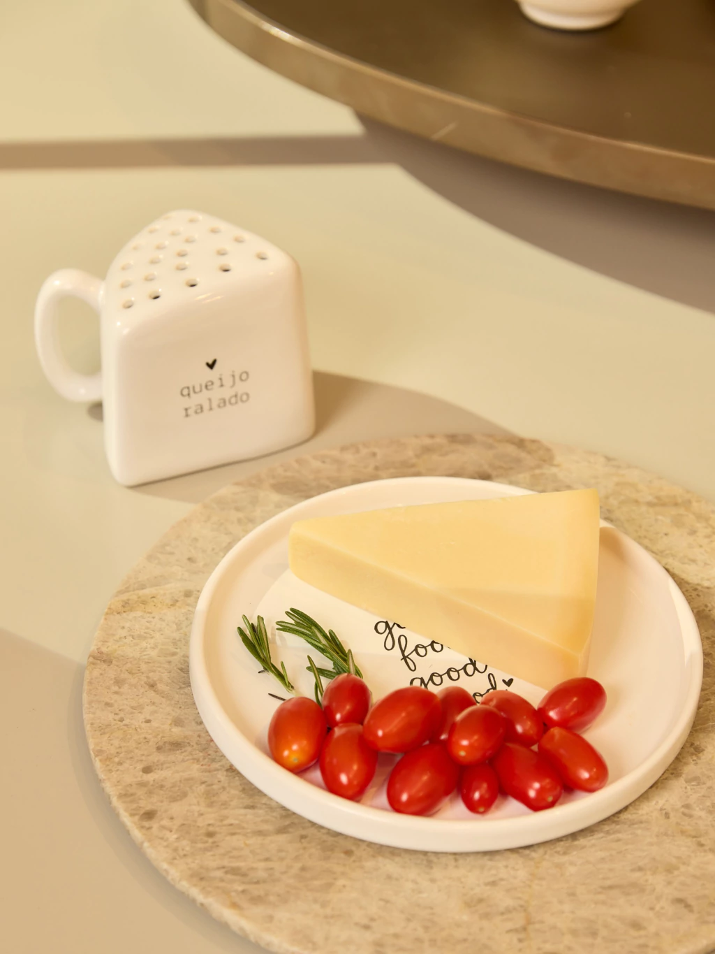 Sirva e armazene seu queijo ralado com charme e praticidade usando o Porta Queijo Ralado INDHOME. Produzido em cerâmica branca de alta qualidade, é o item ideal para quem aprecia detalhes que fazem a diferença à mesa.